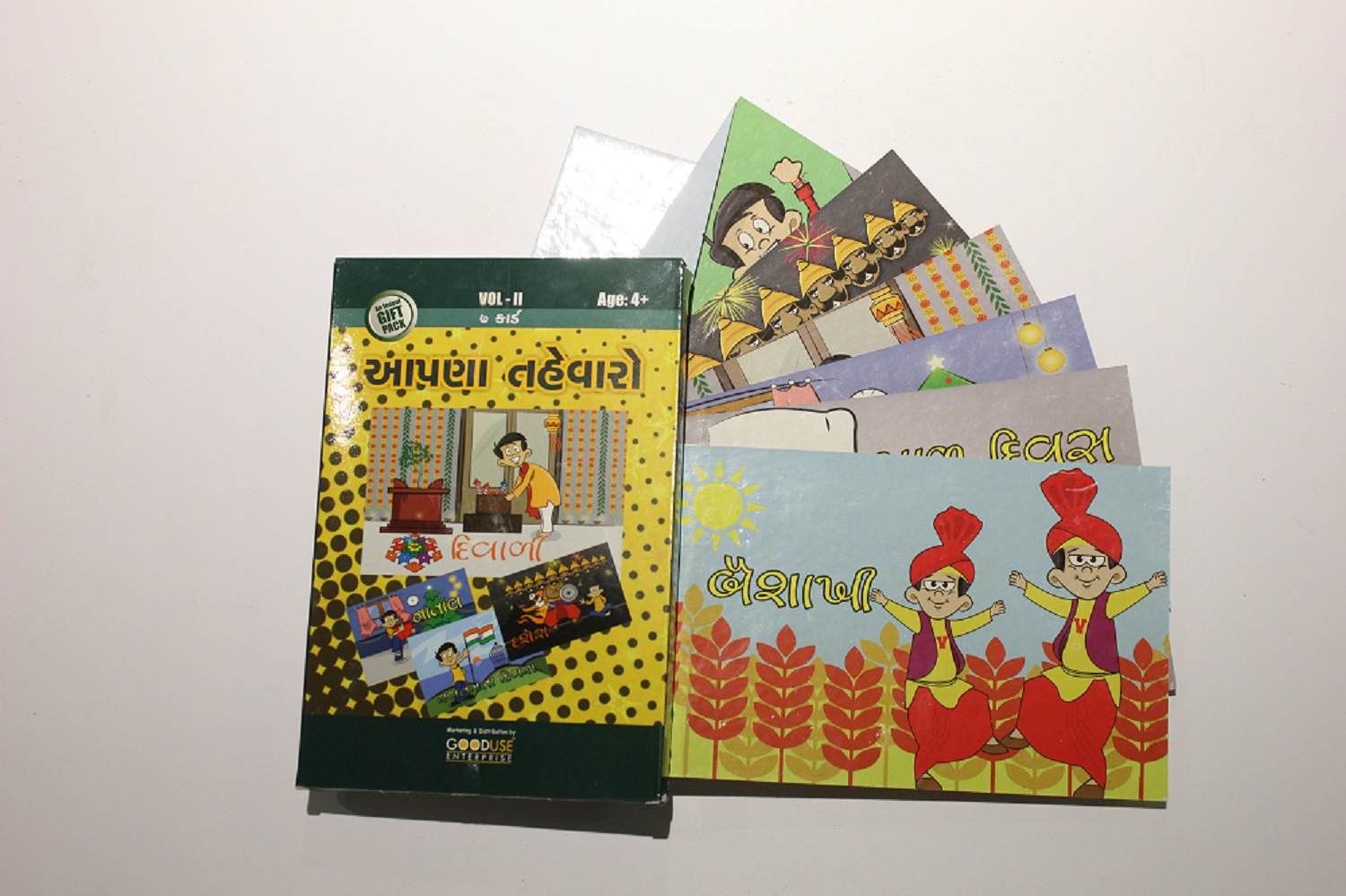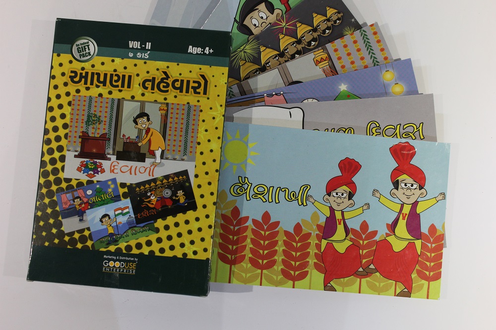 Different Festival with Picture & Massage in Gujarati in Board – Card Foam – A8 Size with Both side Printing – one side Festival Picture and other side Festival Massage in Gujarati Language : 7 Pcs Stiff Board – card board with Packing Box