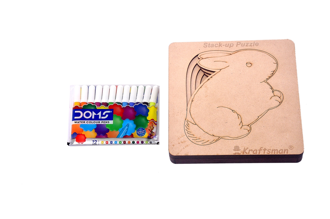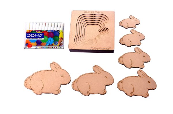 Kraftsman, Presents stack-up puzzles also called layered puzzles. The puzzle is 6 pieces puzzle and has layers of wooden cutouts from the small piece at the bottom to the largest piece at the top.nKids need to sort Bunny-shaped cutout puzzle pieces from small to mid-sized to large sizes.nKids can stack up all the puzzle pieces to learn small to large size stack up one by one from bottom to top to the biggest piece.nWe did not color the pieces as kids may learn the color combinations to sort the puzzle rather than understanding the concept or stack up/layered puzzle.nWe allow kids to color each piece of the layered puzzle to play with their own imagination. Keep your kids busy with coloring the puzzle game by themselves and enjoy the puzzle forever.