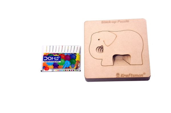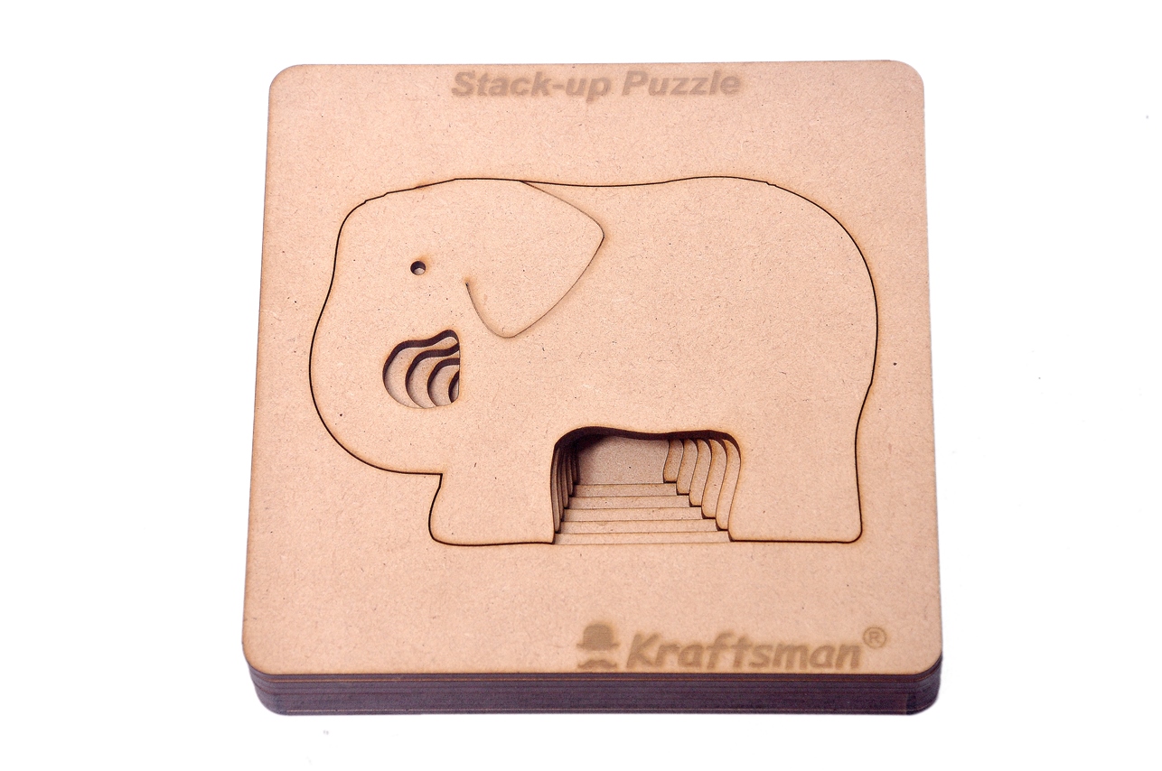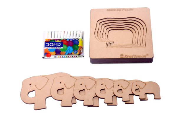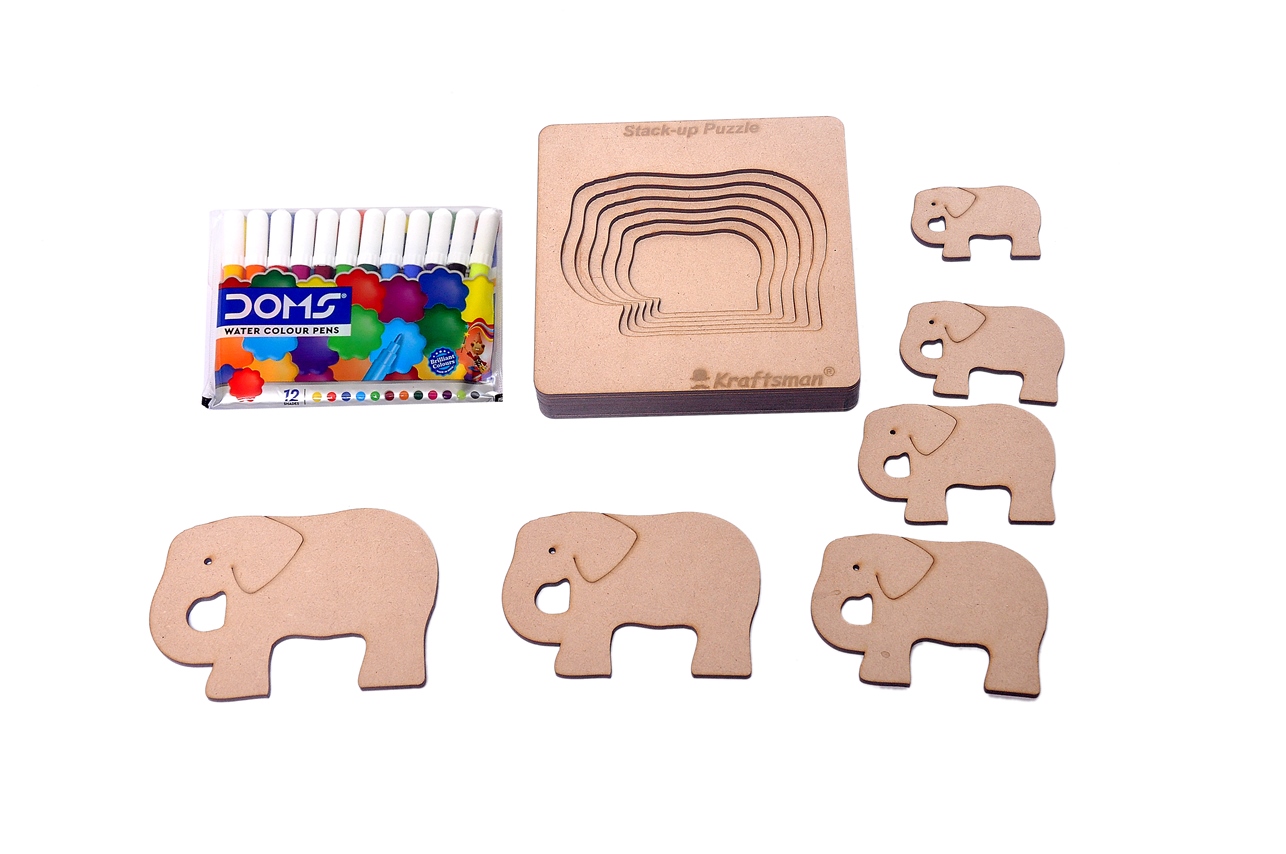 Kraftsman, Presents stack-up puzzles also called layered puzzles. The puzzle is 6 pieces puzzle and has layers of wooden cutouts from the small piece at the bottom to the largest piece at the top.nKids need to sort Elephant-shaped cutout puzzle pieces from small to mid-sized to large sizes.nKids can stack up all the puzzle pieces to learn small to large size stack up one by one from bottom to top to the biggest piece.nWe did not color the pieces as kids may learn the color combinations to sort the puzzle rather than understanding the concept or stack up/layered puzzle.nWe allow kids to color each piece of the layered puzzle to play with their own imagination. Keep your kids busy with coloring the puzzle game by themselves and enjoy the puzzle forever.