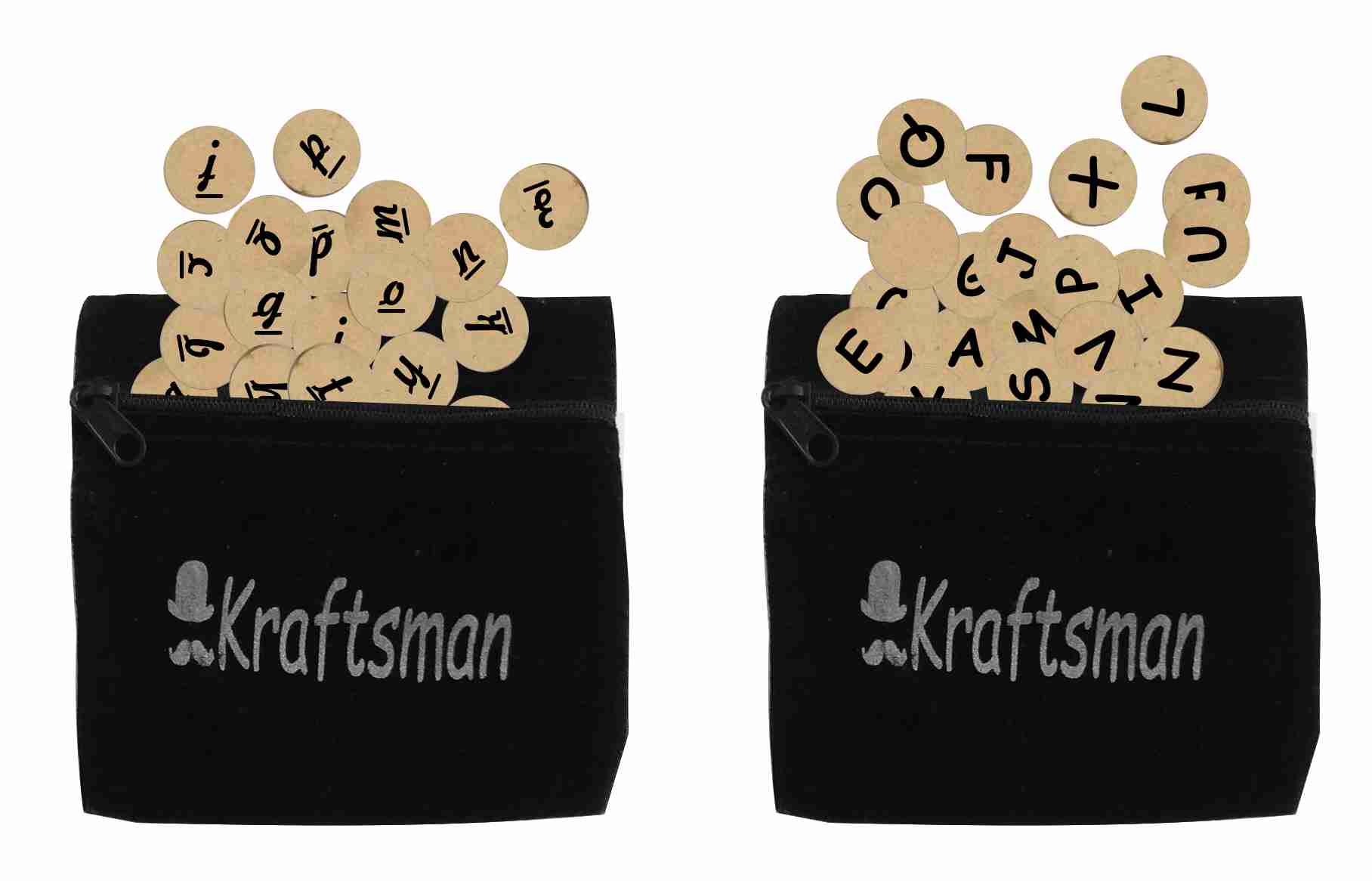 100% Made up of Wood with high quality pine wood.nThe pouch will help you collect all the coins in q place and never let you loose any single of themnEasy to carry with it small size so that kids can hold the coins properly.nKids will grow and learn the basics anytime, anywhere with is small portable gamen12 Blank coins to recreate your lost coins or new ones by your ownPresenting the new kindergarten game educational growing and knowing game. Mini Sentence Maker with english small letters will help your kids to identify small letter alphabets. They can also learn to make words and small sentences using the same coins of small letter alphabets.nnThe product is made of high quality pine wood by highly experienced woodworkers and purely handcrafted. A travel coin pouch is also provided to safeguard the coins. The coins will not fall into your bag or purse while carrying the product with you.nnEnjoy with your kids with this small game to help them learning and growing.