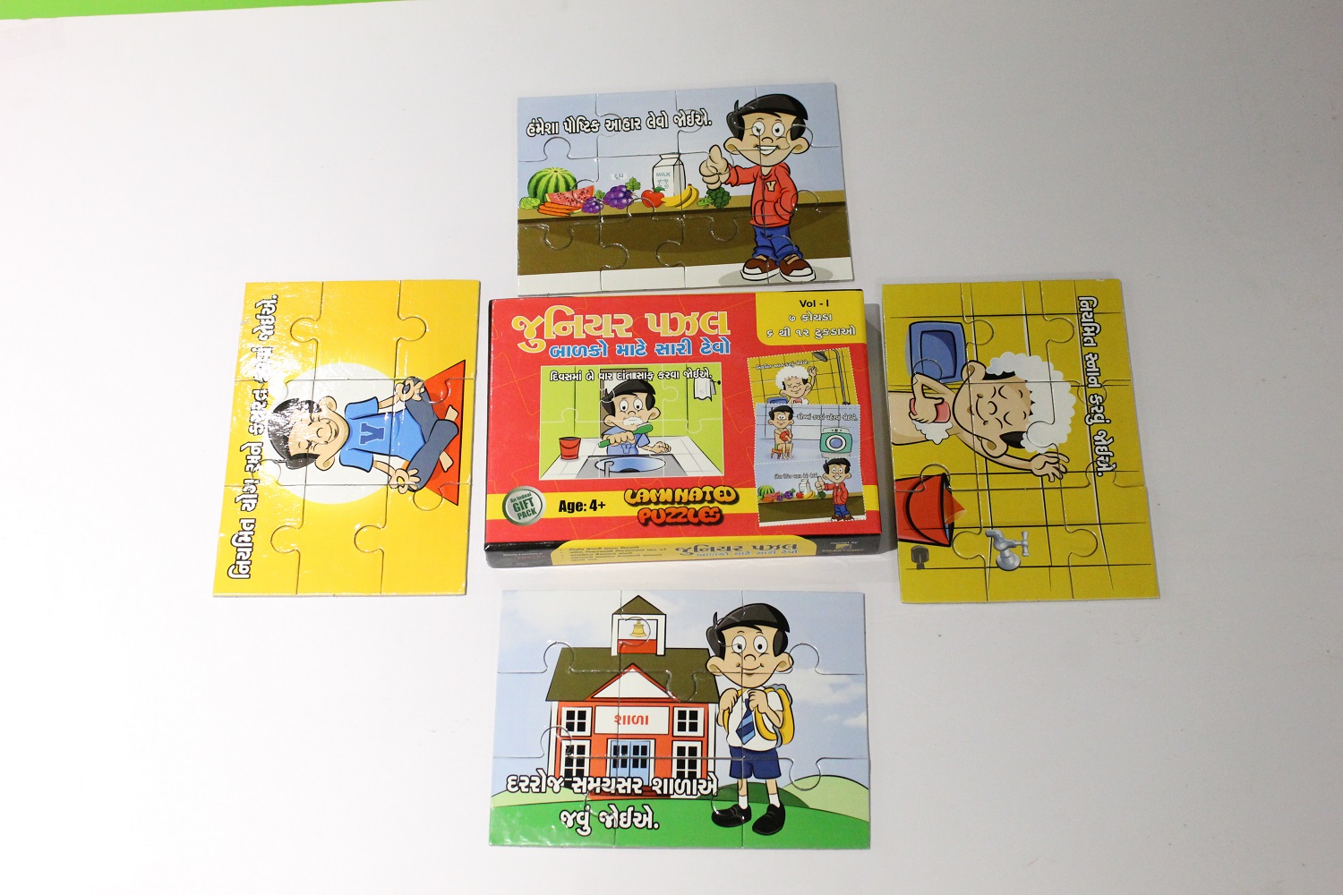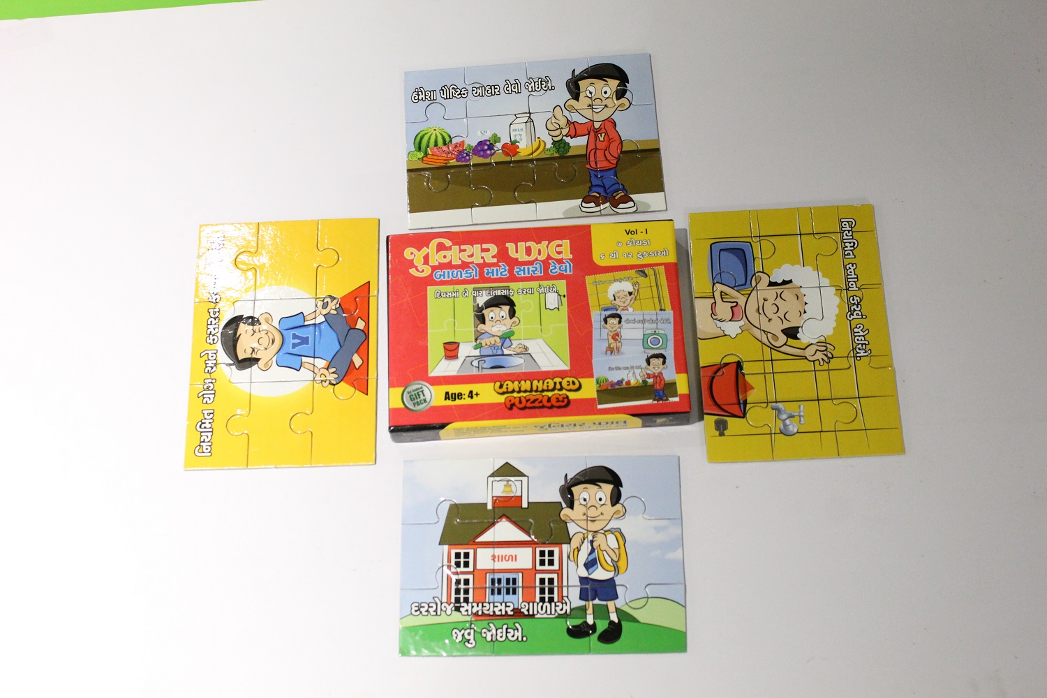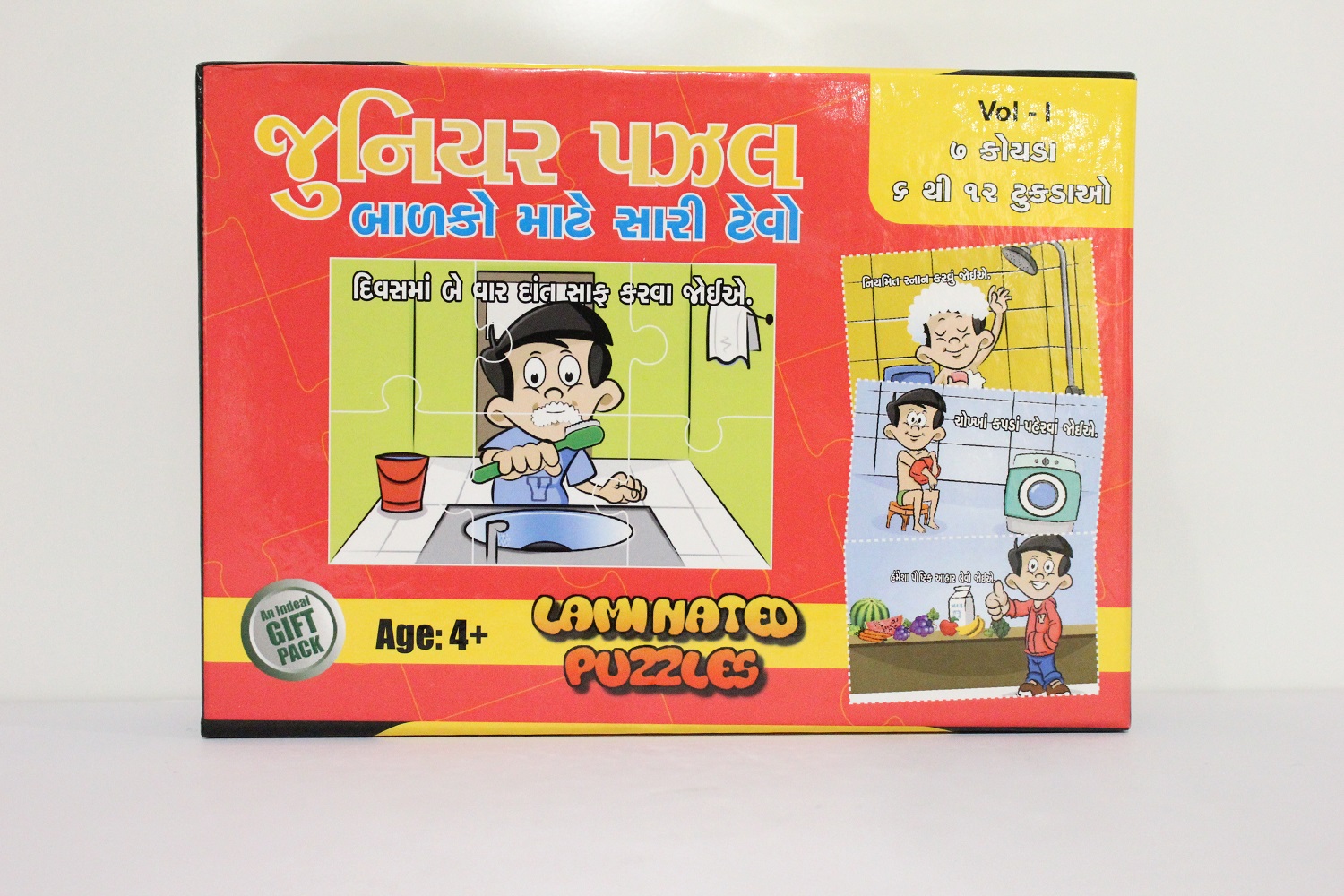 Different Good Habits with Picture & Massage in Gujarati in Puzzel Foam – A8 Size 7 Pcs FBB Board Puzzel card ( 6 / 9 / 12 – Pcs Cutted ) with Packing Box