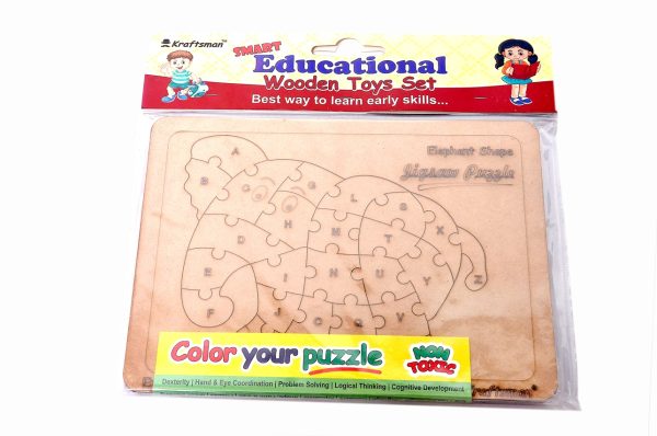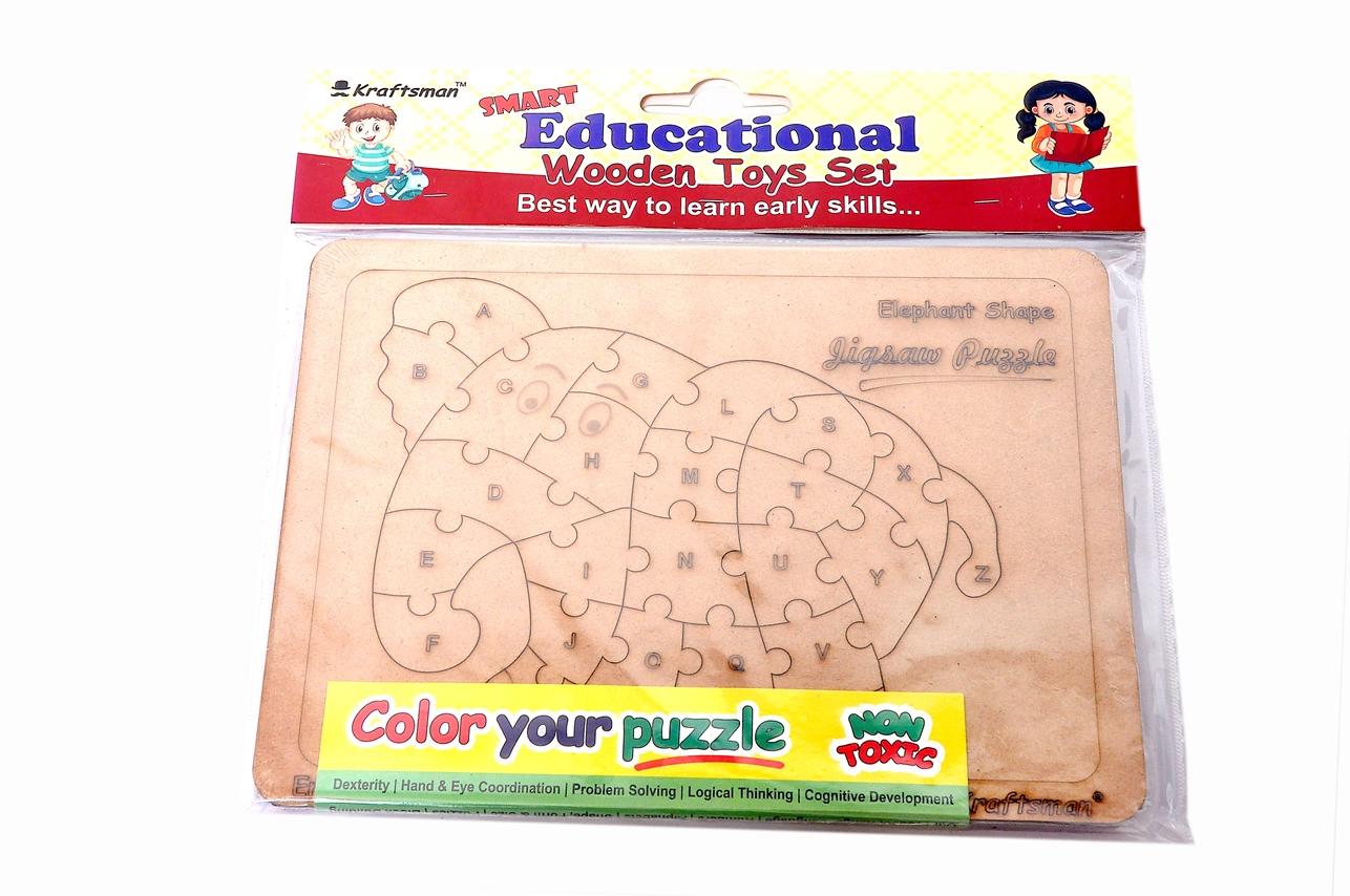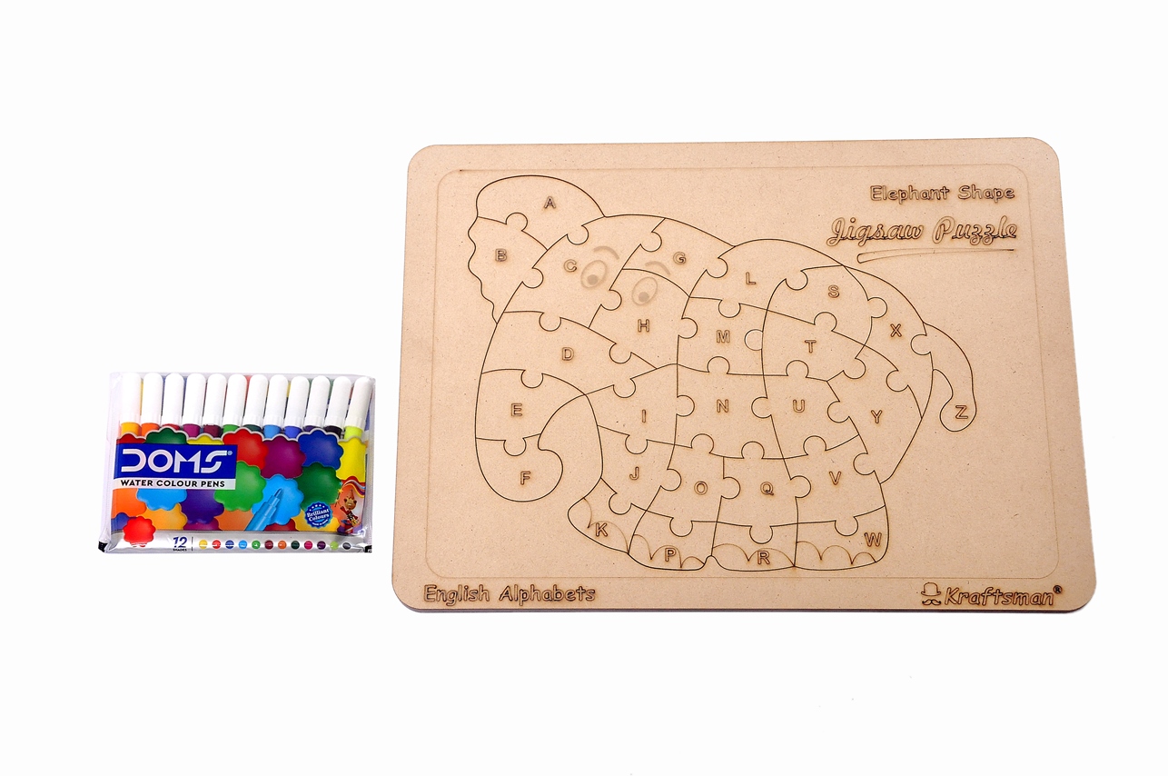 Made up of Engineered woodnKids can color the puzzle pieces and play forevernSketch pen color set includednEnglish Alphabets Upper Case Jigsaw Puzzle,. Each Jigsaw Puzzle has all English alphabets please in a pattern to form an animal shape in the end. The sketch color kit is also provided along with the pack of the puzzle. so help your kids to keep them busy with coloring/writing or draw the objects for each alphabet cutouts and let them play with any time anywhere.