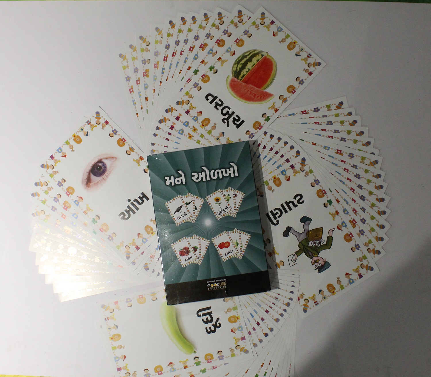 A set of 82 Pcs flash cards of different educational objects like Animal, Shapes, Colour, Birds, etc for kids learning. Flash cards to be of digital printed on gloss paper with lamination. All the Picture Content should have Gujarati Names .Size of Each cards : 140mm X 200mm . Portrait Format.